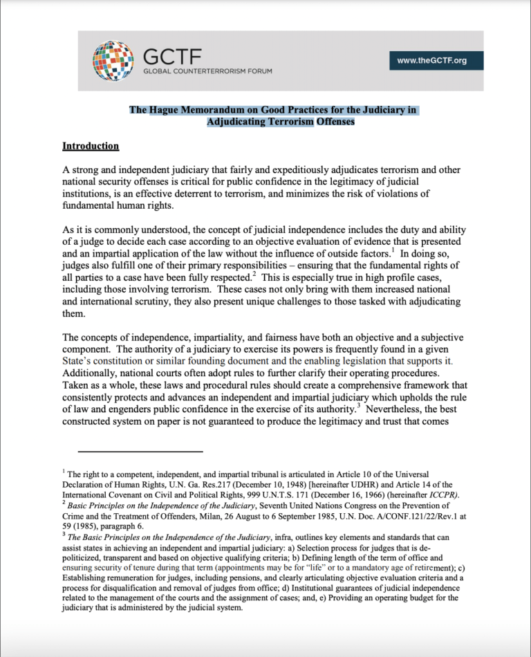 The Hague Memorandum on Good Practices for the Judiciary in Adjudicating Terrorism Offenses